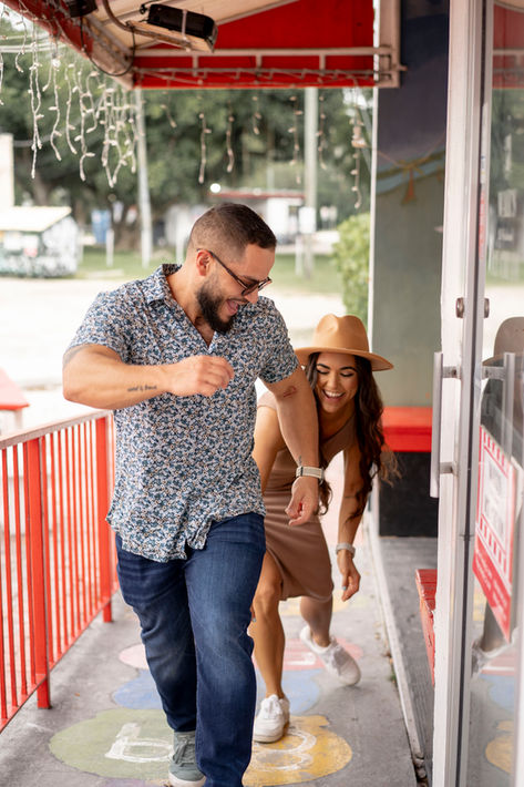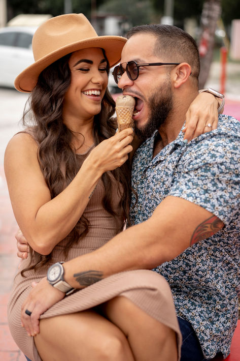 We always love using unorthadox and visually appealing locations for our engagement shoots and Walls Ice Cream in Miami, FL definitely fits that bill. Don't let the location fool you, Maibel and Davi are full-time, bodybuilding gym rats who take their physique seriously! So as you can imagine, it wasn't very difficult to get them in character as a couple enjoying an ice cream date considering that they probably hadn't had sweets since 1986 (haha kidding of course!)